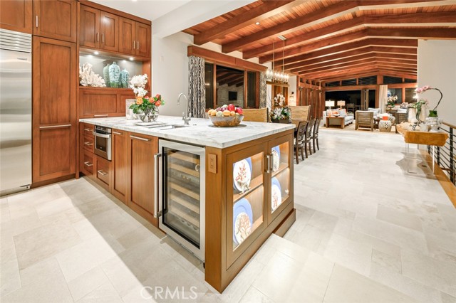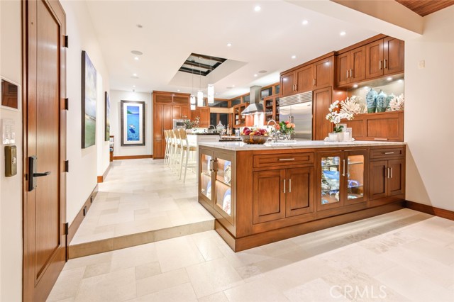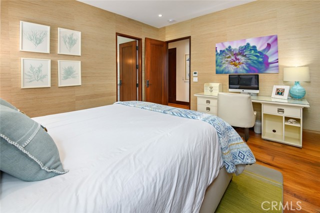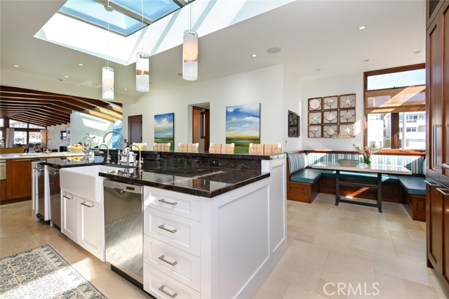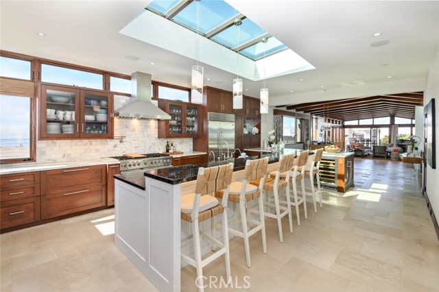 This is A RARE, Luxurious, OCEAN VIEW, Strand-adjacent CUSTOM QUALITY built home located IN THE 100-block South End Sand Section. It has been over 20 years since a home of this quality, size, and location (100 block walk street South Sand Section) has been listed on the market for purchase. This rare gem, just steps from the beach and a short stroll to the vibrant downtown, offers the perfect place for privacy and coastal living. Jon Starr Design Group designed this fabulous 5 bedroom, 7 bath home (two are 1/2 baths), office, office area, 3 living spaces, with a three-car garage and room for a 4th car outside. 5,401 sq is featured on 4 levels. There is an elevator to access all levels, making the separation desirable and the flow easy to enjoy. One of the "living spaces" could be a living space/gym or movie room. There is an extensive wine room (600+ bottles) for the wine connoisseur. (or design this room to fit your personal needs). The teak and limestone floors lend a timeless elegance to the space, while the mahogany ceilings, doors, and trim add warmth and richness. This home offers VIEWS of the OCEAN, The Manhattan Pier, and Malibu. Imagine waking up in your primary retreat, where the gentle ocean breeze greets you on your private deck. The open floor plan makes it an entertainer's dream, with a spacious dining area and a chef's kitchen featuring a walk-in pantry, oversized breakfast bar, and built-in eating nook. Your guest will be wowed by the well-appointed beach room with a wet bar. This room opens directly onto the walking street, perfect for enjoying coastal sunsets or hosting gatherings easily, while the downstairs flex space is perfect for a home gym or movie room for the whole family to enjoy. The use of skylights enhances the afternoon sun and sunset time of day. The lighting is fabulous. There are many custom features throughout. Whether you are enjoying a morning walk along the beach or relaxing with loved ones in one of the many living spaces, this home offers a lifestyle that is second to none. Don't miss the chance to own a premier piece of Manhattan Beach Paradise.
